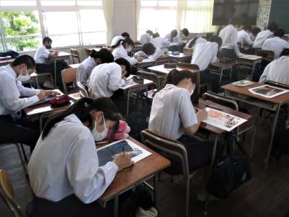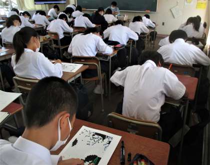 2年生 展示発表 モザイクアート制作に取り組んでいます。