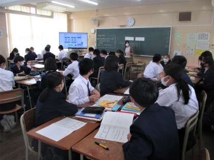 1年生 英語 本時で学ぶ表現を使い、英語で意見交換