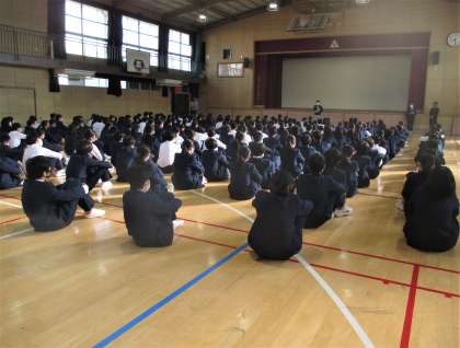 登校時間の確認、本日の高等学校出前授業の説明です。