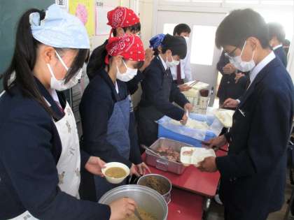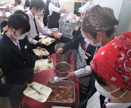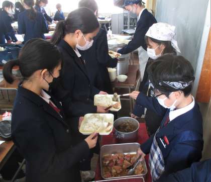 給食の配膳風景です。