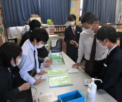 図書室 本の貸し出し風景です。