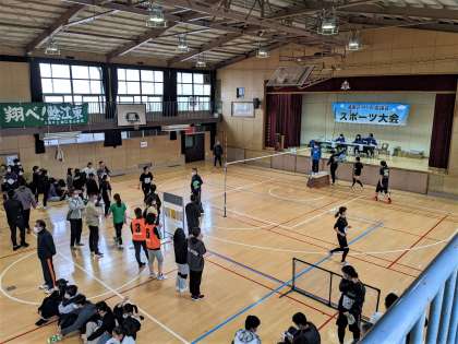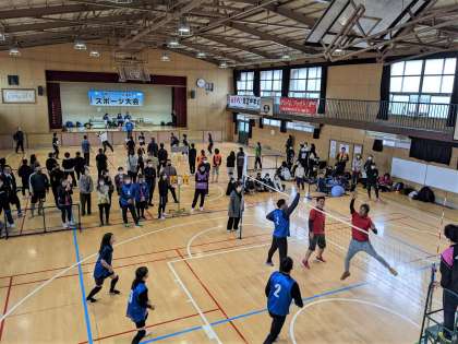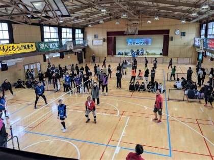 本校が会場で、ソフトバレーボールの大会が行われています。