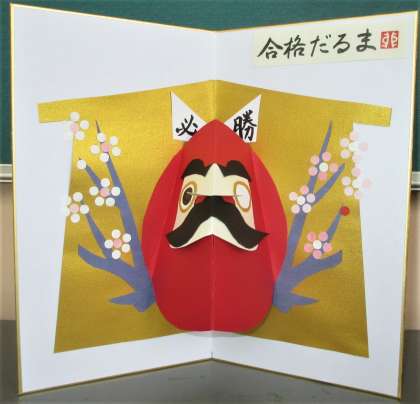地域の方が3年生に「合格だるま」を和紙で作っていただきました。