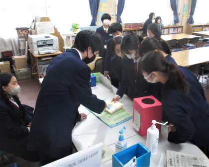 図書室 図書委員による本の貸し出し
