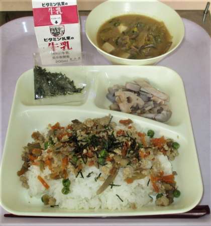 鶏ごぼうご飯 牛乳