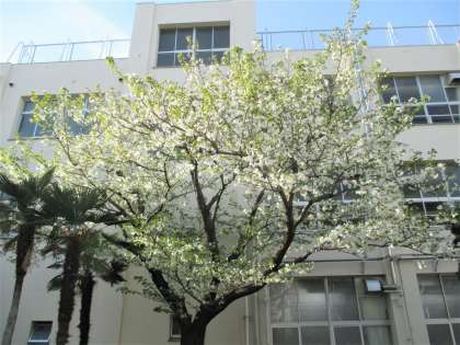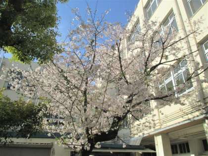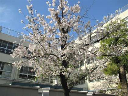 正門側の桜も、ほぼ満開です。