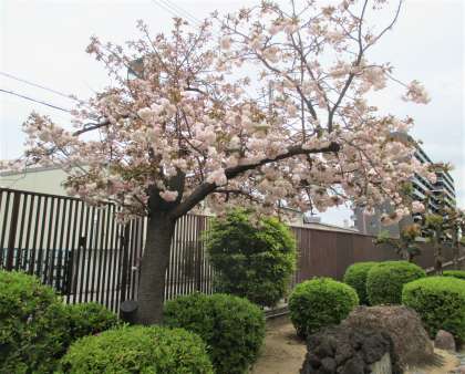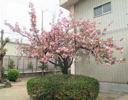 体育館横の桜が満開です。