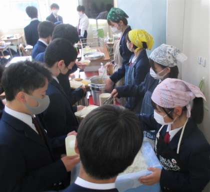 給食の配膳風景です。