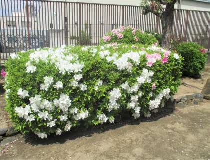 正門周辺のツツジが満開になってきました。