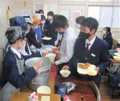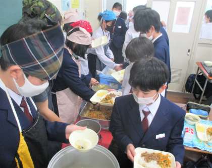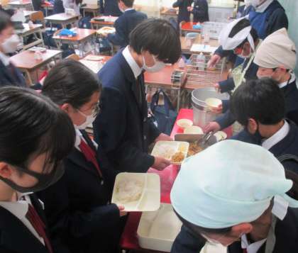 給食の配膳風景です。