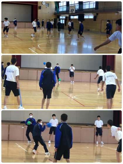 体育館全面を使ってのドッジボールです。