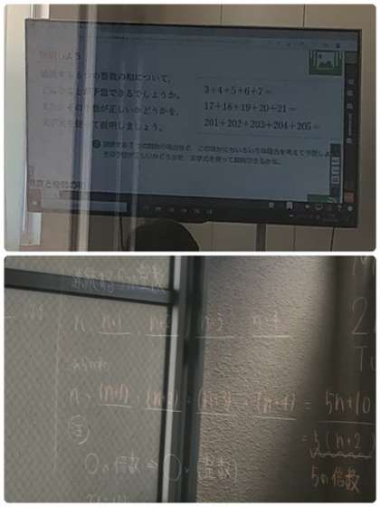 (問)『連続する5つの整数の和について、どんなことが予想できるでしょうか。また、その予想が正しいかどうかを、文字式を使って説明しましょう。』