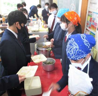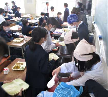 給食の配膳風景です。