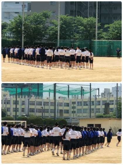 体育大会(6月2日予定)に向け、すでに集合・整列の練習が始まっています。