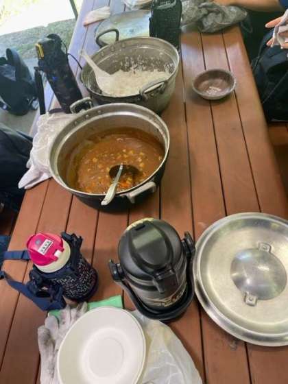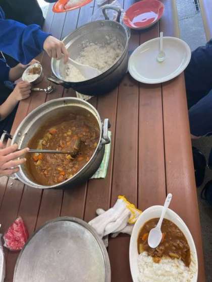 カレーが出来上がり始めています。班によってカレーに個性があります。