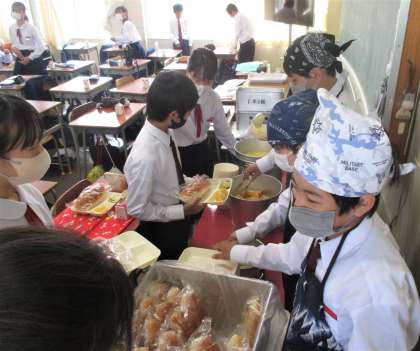 給食の配膳風景です。