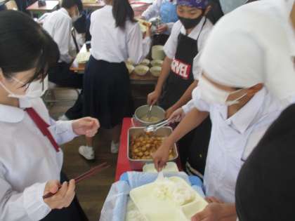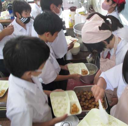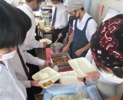 給食の配膳風景です。