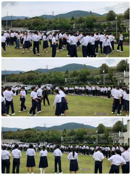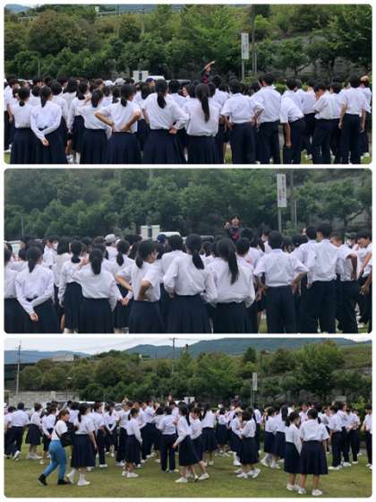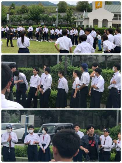 入村式までの時間を利用して芝生広場でレクレーション、バースデー・チェーンにチャレンジしました。