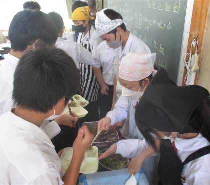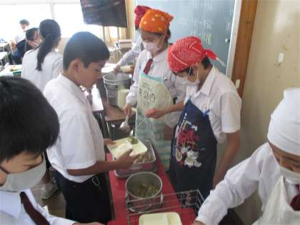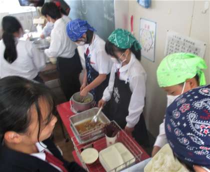 給食の配膳風景です。