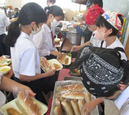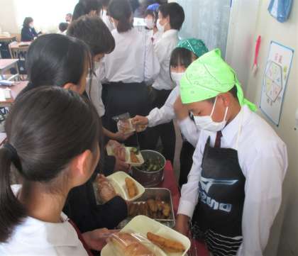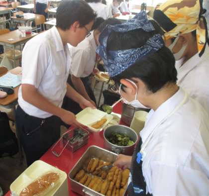 給食の配膳風景です。