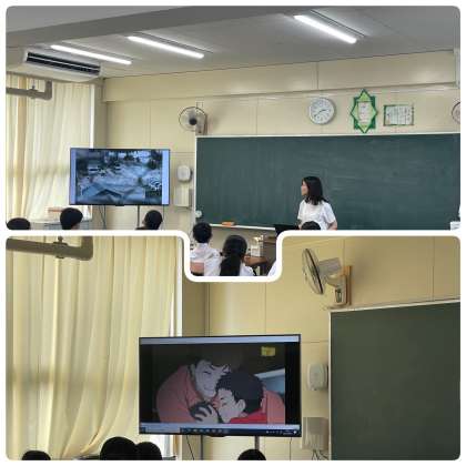 一年生は、総合学習の時間に、防災(津波)について学習をしました。東日本大震災の津波に関する動画を見ました。