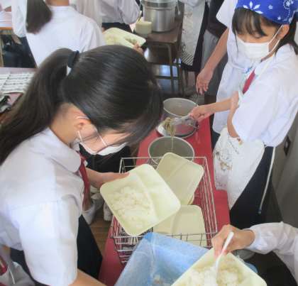 給食の配膳風景です。