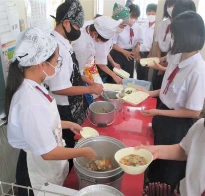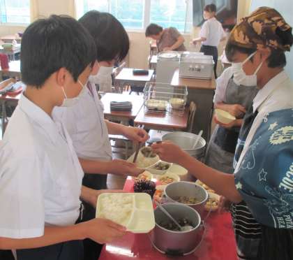 給食の配膳風景です。