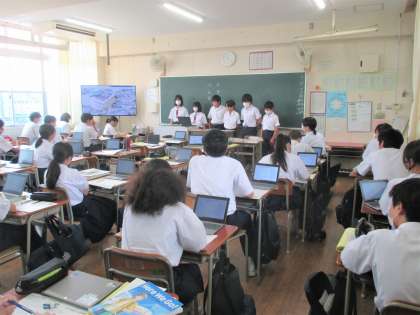 2年生 英語 グループで各国の調べた内容を英語で発表