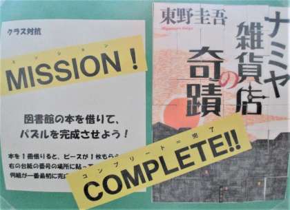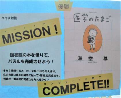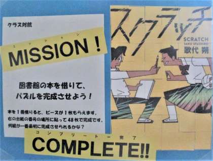 1年生 図書館の本を借りてパズルを完成させる取り組みです。