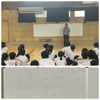 一年生の学年集会の様子です。担当の先生より「白板に書かれている式で間違いがあったと思いますが、間違いに対して笑いましたよね。人のできていない部分を見つけるのではなく、出来ている部分を見つけてください。」と話がありました。