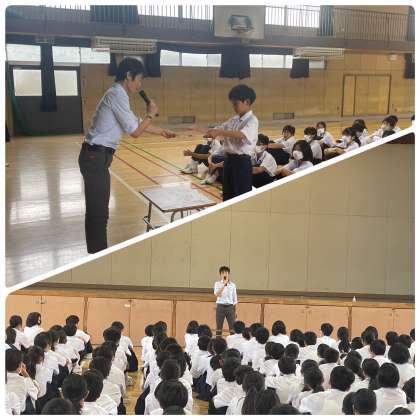 「時を守るキャンペーン」とは、一学期の間を通して、カバンを集会の整列開始時刻(8:15)までに入れることができなかった数が少なかったクラスの表彰です。今回は、1年4組が優勝しました。