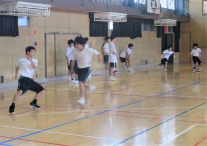 体育館 バスケットボール部 茨田北中と合同練習です。