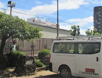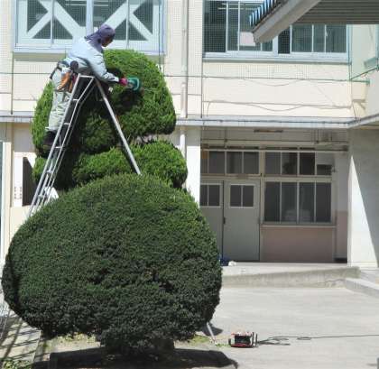 校園営繕園芸事務所より、校内の樹木伐採作業の2日目です。