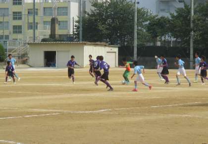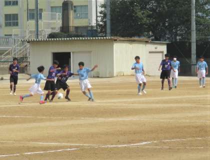 運動場 サッカー部 練習試合の様子です。