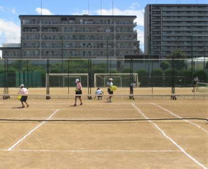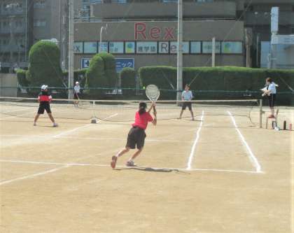 運動場 硬式テニス部 練習試合の様子です。