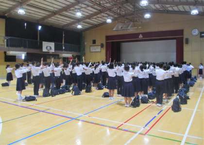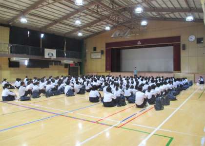 体育館で学年集会です。