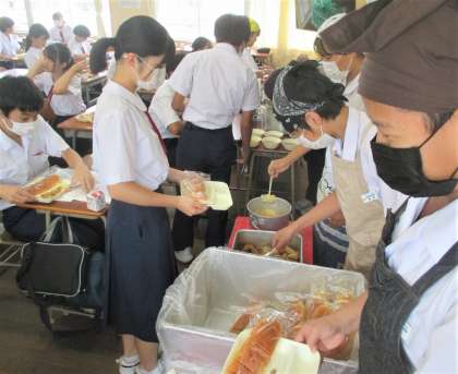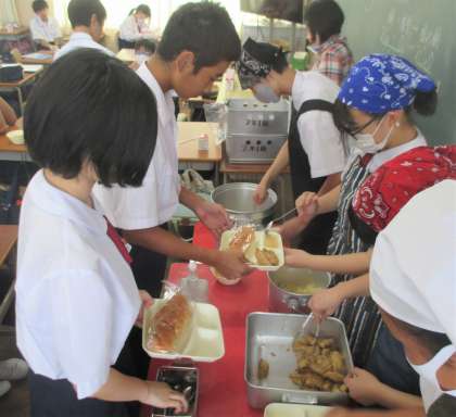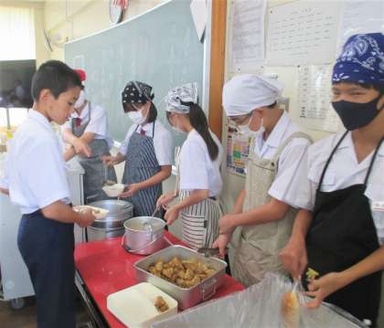 給食の配膳風景です。