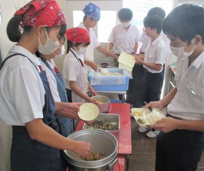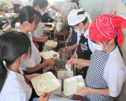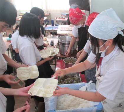 給食の配膳風景です。