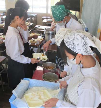 給食の配膳風景です。