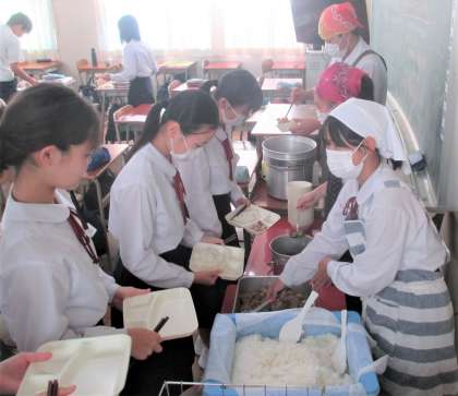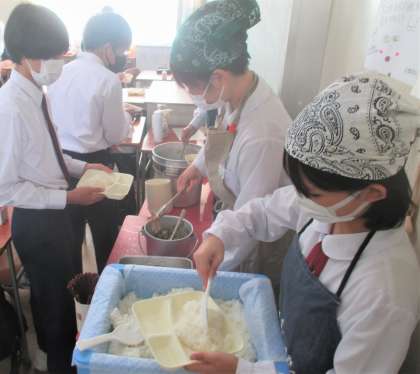 給食の配膳風景です。