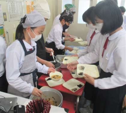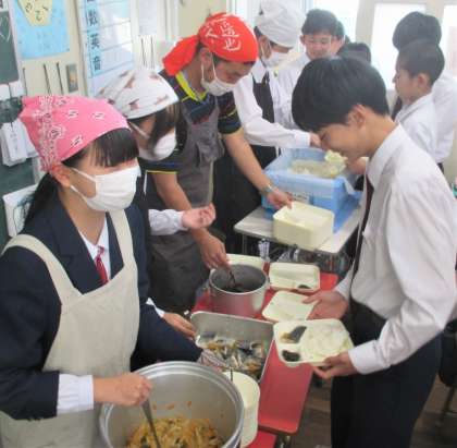 給食の配膳風景です。