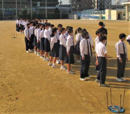 合唱コンクールにむけての入退場の練習です。