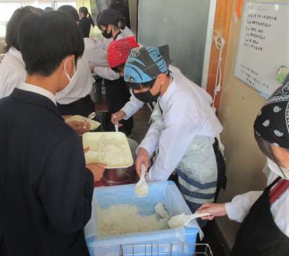 給食の配膳風景です。