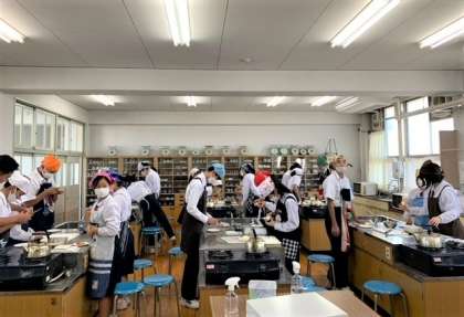 2年生家庭科の授業で『うさぎりんご』の実技テストを実施しています。