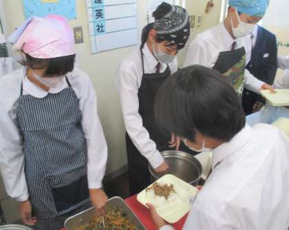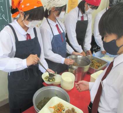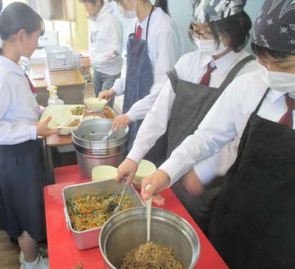 給食の配膳風景です。