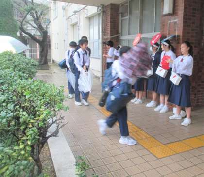 生徒会による赤い羽根共同募金のよびかけ最終日です。