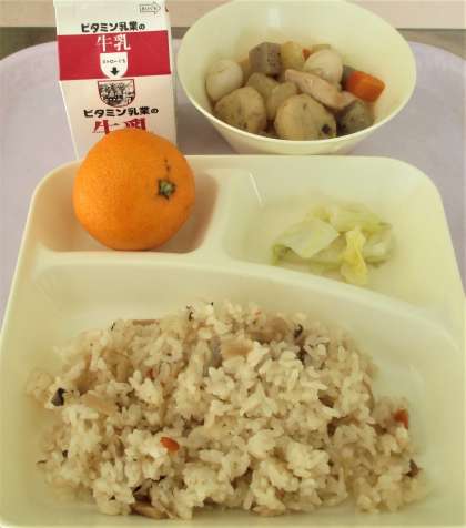 かやくご飯 牛乳 みかん