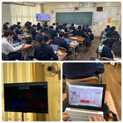 一年生の英語の様子です。ICTを活用して期末テスト前の復習を行っています。みんな意欲的に取り組んでいました。また、テスト前に分からない部分が明確になって有意義な時間になりました。