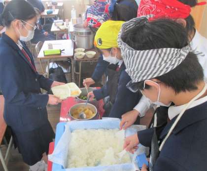 給食の配膳風景です。