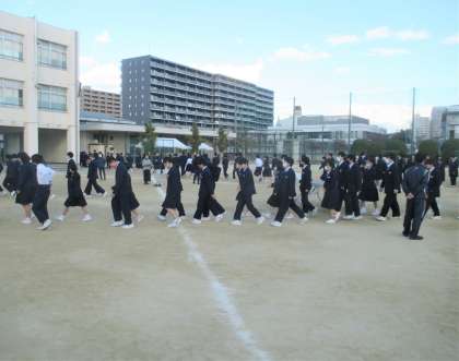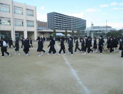 集合後 津波の避難訓練